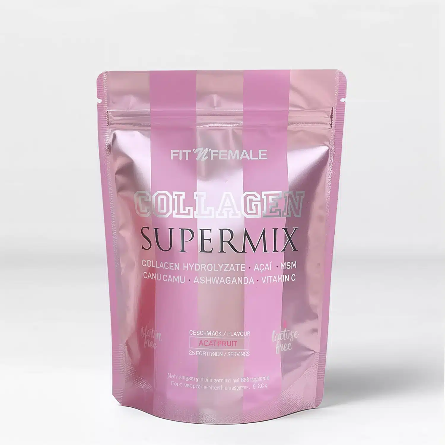 Zutaten | Kollagenhydrolysat (70%, Rind), Camu Camu Extrakt, Ashwaganda- Extrakt, Methylsulfonylmethan (MSM), Maltodextrin Farbstoff: Anthocyane, Methylsulfonylmethan (MSM), natürliches Aroma, Säuerungsmittel: Citronensäure, Süßungsmittel: Sucralose |
