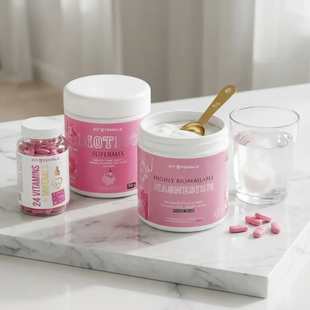 Drei perfekt kombinierte Essentials für deinen täglichen Wohlfühl-Stack: Biotics Supermix + Magnesium + 24 Vitamins & Minerals – für ein leichteres Bauchgefühl, mehr Balance von innen und eine Versorgung, die auch an stressigen Tagen sitzt.